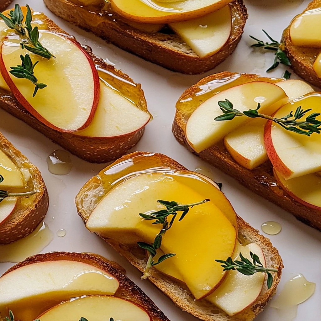 Apple and Brie Crostini with Honey Drizzle is a delectable appetizer perfect for any occasion. This dish features crispy baguette slices topped with creamy brie, sweet apple slices, and a luscious honey drizzle, creating a delightful balance of flavors. Ideal for gatherings or cozy nights in, these crostini are simple to prepare yet provide an elegant presentation that will impress your guests.