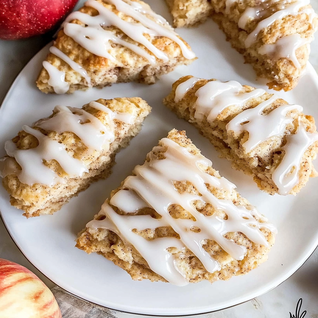 Cinnamon Apple Scones with Vanilla Glaze are the perfect autumn treat, combining tender apple pieces and warm cinnamon in a flaky scone, all drizzled with a rich vanilla glaze. Ideal for breakfast, brunch, or a cozy afternoon snack, these delightful scones are easy to make and sure to impress family and friends with their irresistible aroma and flavor.