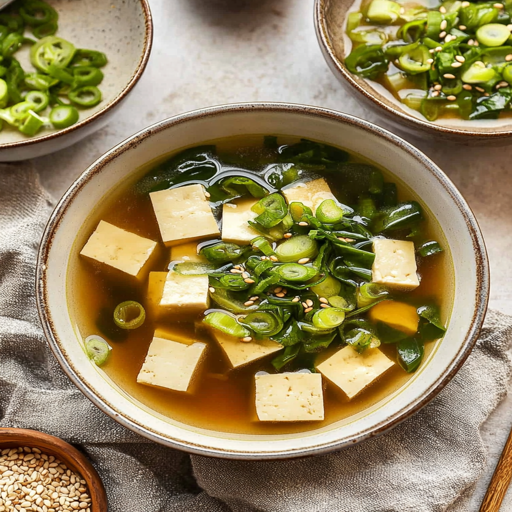 Miso soup with tofu is the ultimate comfort food, delivering a warm, savory embrace in every bowl. This Japanese classic features a rich umami broth, silky cubed tofu, and earthy seaweed, making it perfect for chilly days or when you need a little pick-me-up. Quick to prepare and endlessly customizable with seasonal vegetables or proteins, this miso soup will become a staple in your kitchen.