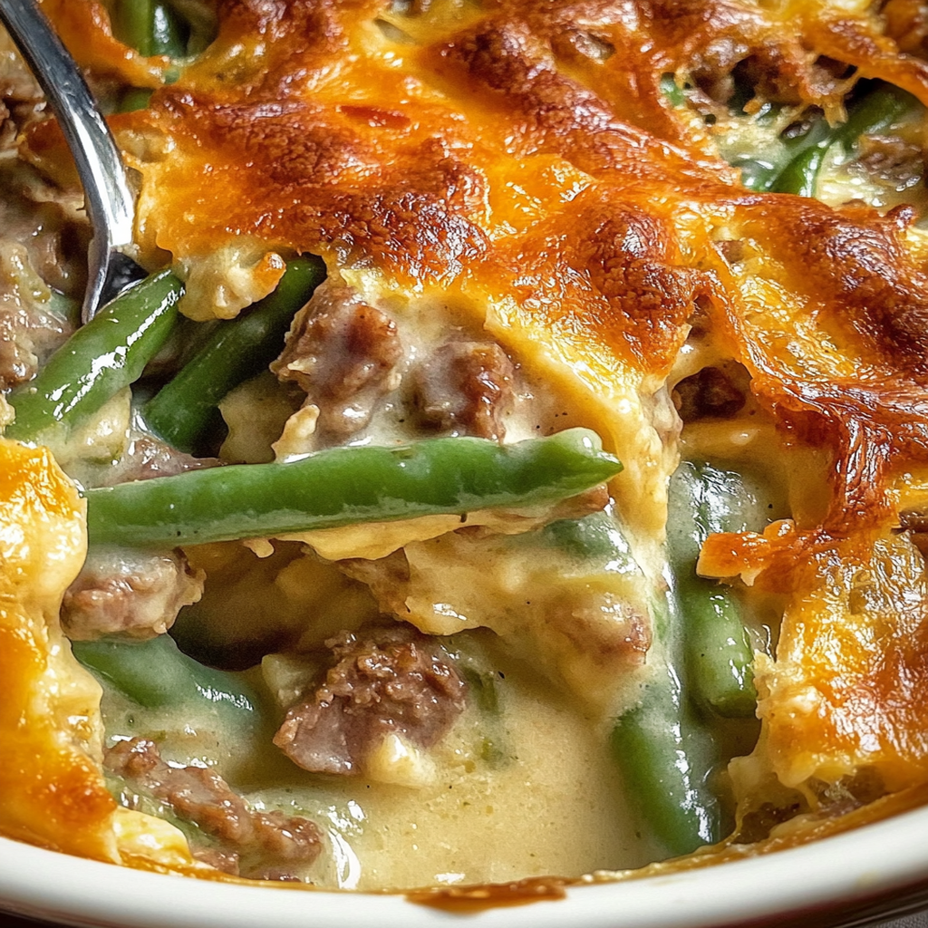 Cream Cheese and Beef Green Bean Casserole