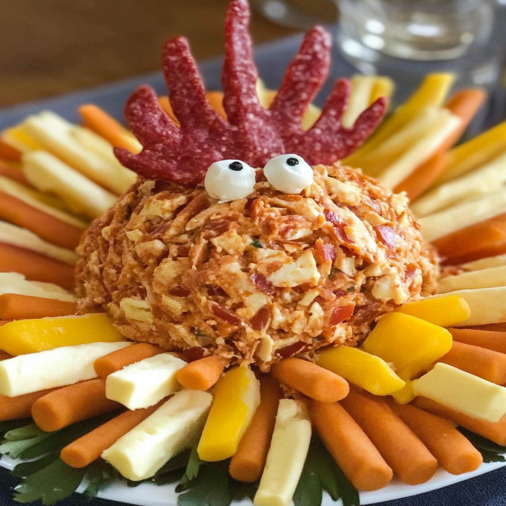 Serving a Turkey Cheese Ball is easy and fun! You can shape it into a round ball or log and place it on a serving platter. Pair it with an assortment of crackers, fresh vegetables, or breadsticks. For special occasions, consider garnishing with herbs or edible flowers to make it visually appealing. This appetizer is perfect for parties, holiday gatherings, or casual get-togethers.