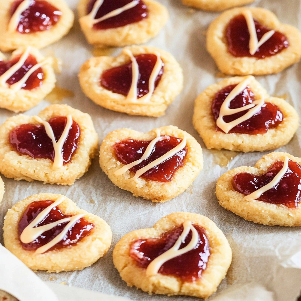 Thumbprint Jam Hearts are delightful, heart-shaped cookies filled with luscious jam that evoke childhood memories and warm kitchen aromas. Their buttery, crumbly texture melts in your mouth, making them the perfect sweet treat for any occasion. Easy to make and customizable with your favorite jams, these cookies will become a beloved favorite at family gatherings or cozy afternoons at home.