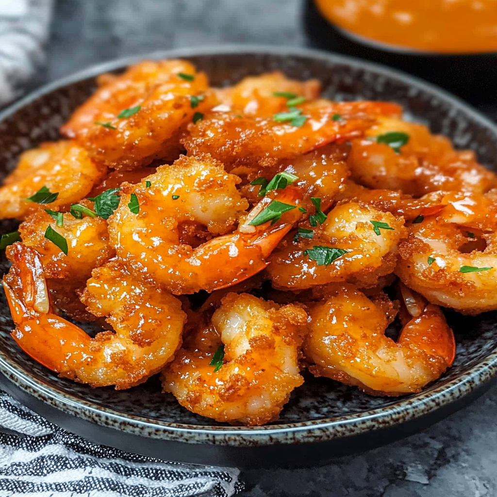 Keywords: - For extra crunch, coat shrimp with cornstarch before dipping into flour. - Feel free to substitute shrimp with chicken or tofu for variations. - To enhance flavor, add cayenne pepper or sesame oil to the sauce.