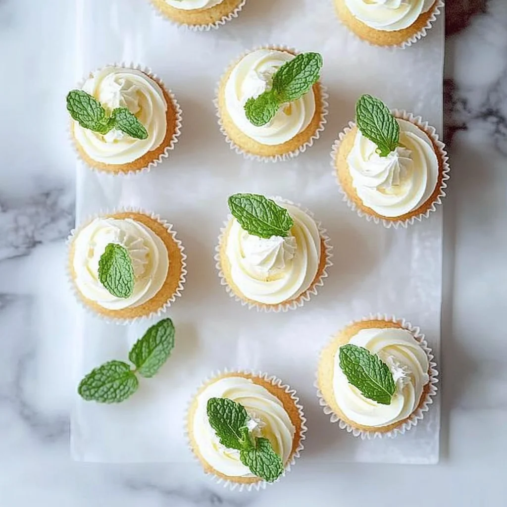 - Frost the cooled cupcakes and garnish with fresh mint leaves and optional crushed ice.